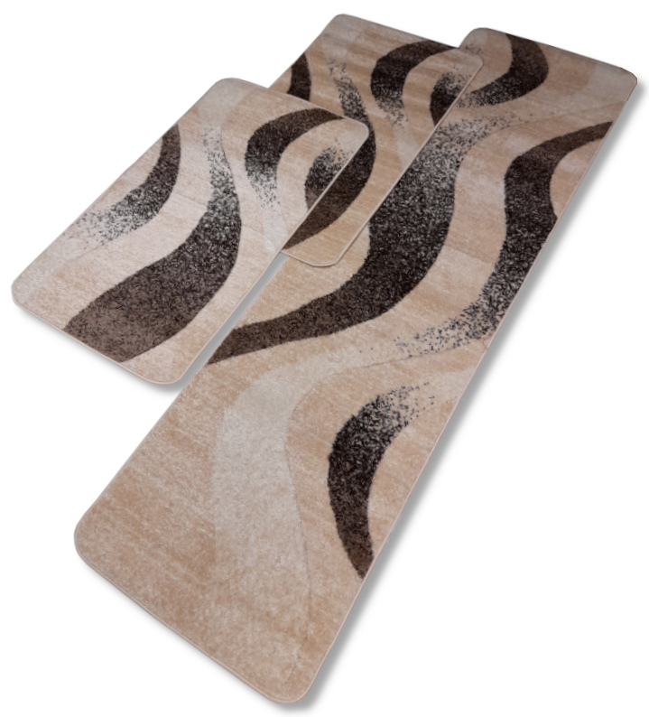 Többféle méretben és színárnyalatban kapható szőtt szőnyeg szett, szegett szélekkel.