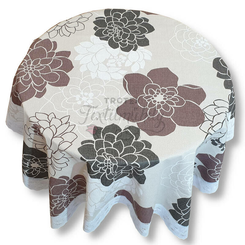 Barna nagy virágos csipkés szélű terítő Ovális – 132×178 cm