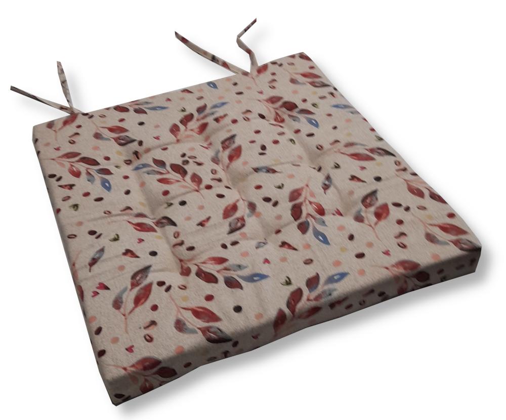 Bézs, barna levélmintás megkötős ülőpárna Loneta Lakástextil huzattalBézs, barna levélmintás megkötős ülőpárna Loneta Lakástextil huzattal