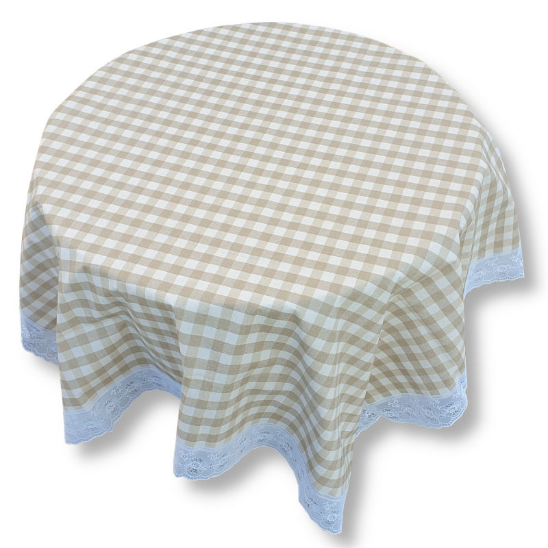 Bézs fehér kockás csipkés terítő Szögletes – 122×152 cm