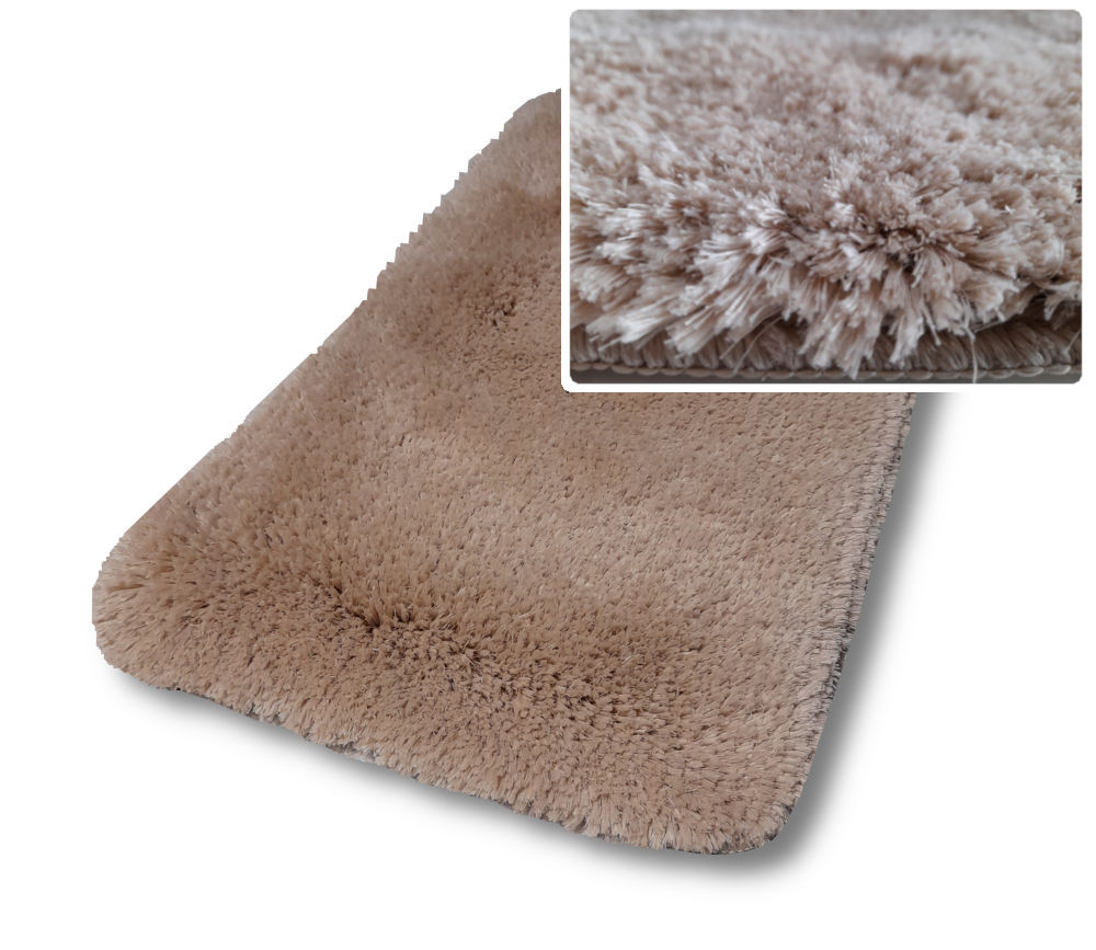 Puha tapintású, gumírozott hátoldalú, csúszásmentes szőnyeg, amely kiválóan alkalmas fürdőszobába és hálószobába egyaránt.