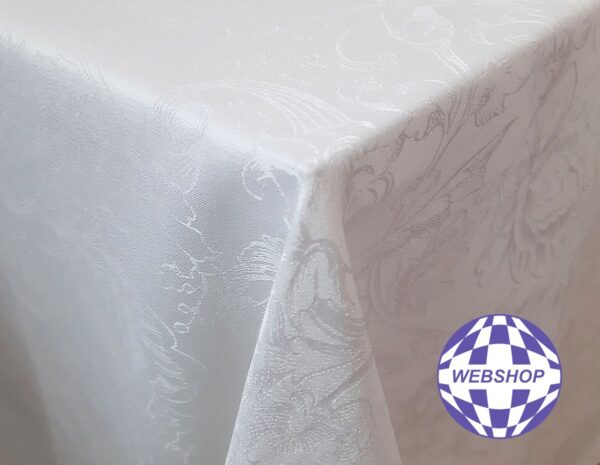 Damaszt hatású terítő, könnyen kezelhető, nem gyűrődik.