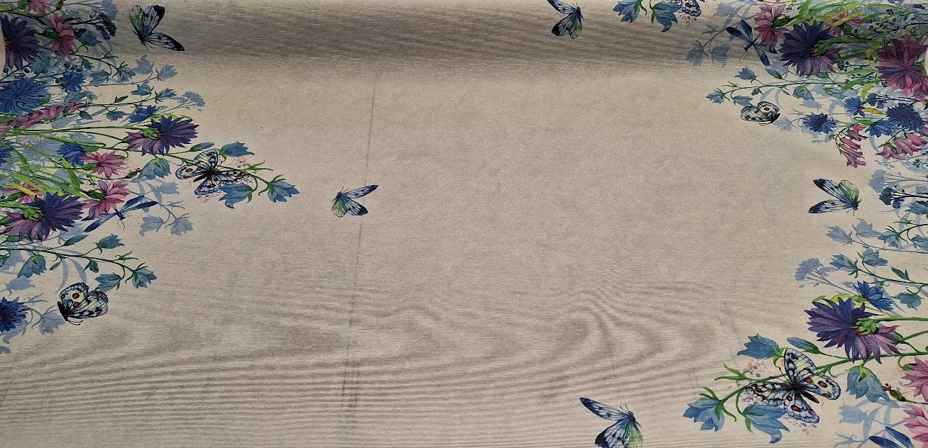Kék virágos letörölhető textil terítő