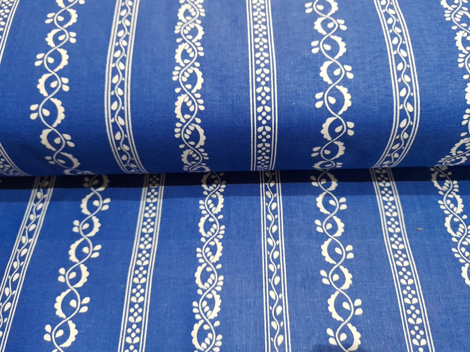 Kékfestős – fehér, csíkos népimintás pamutvászon