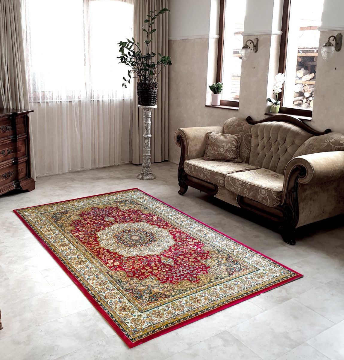 Klasszikus mintázatú bordó-krém szőnyeg
