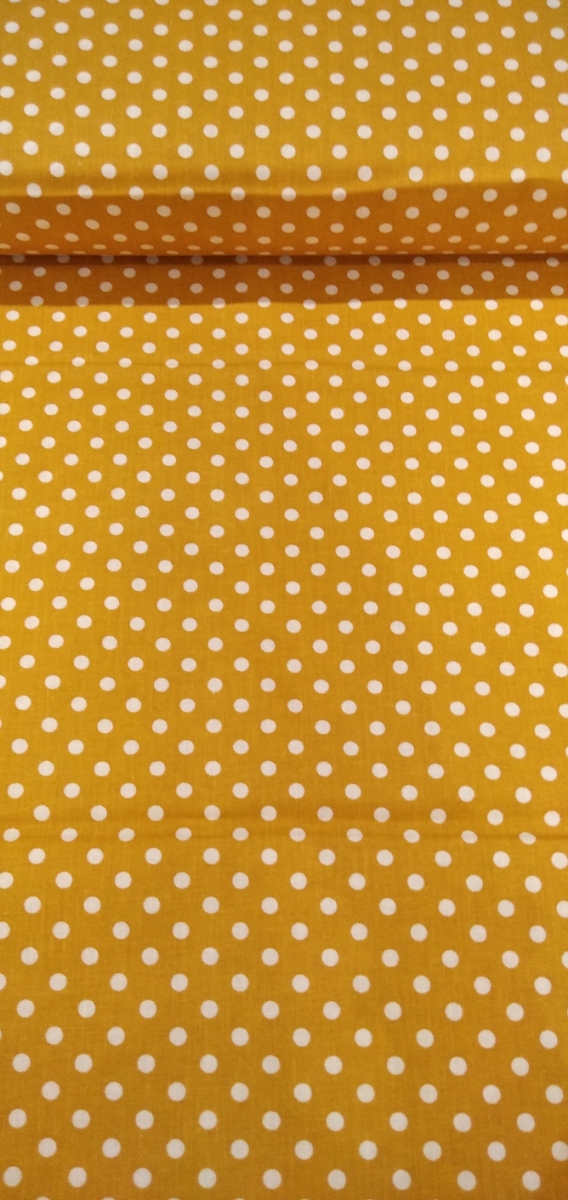Pamutvászon – Sárga alapon fehér pöttyös – 140 cm