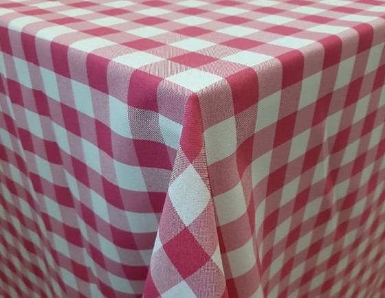Pink-fehér kockás Panama/Minimat szövet terítő