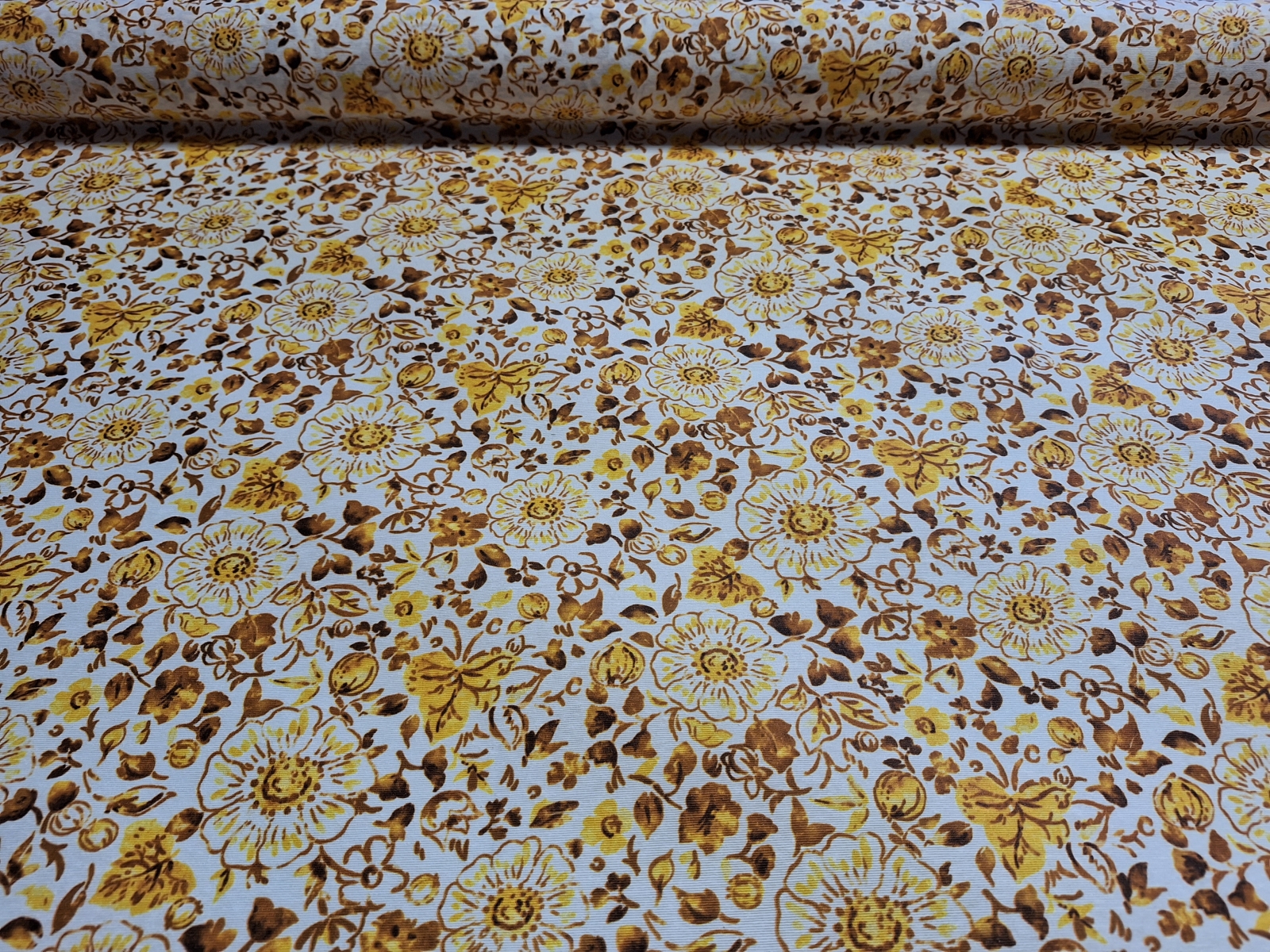 Sárga virág mintás letörölhető textil terítő