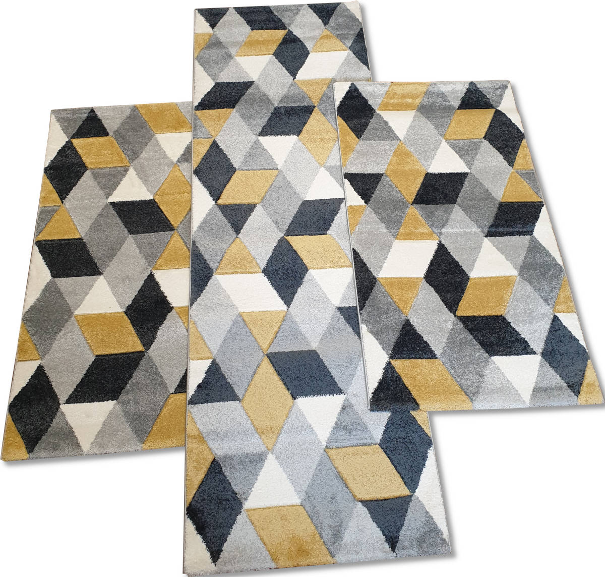 Szürke-sárga mintás 3 részes szőnyeg szett