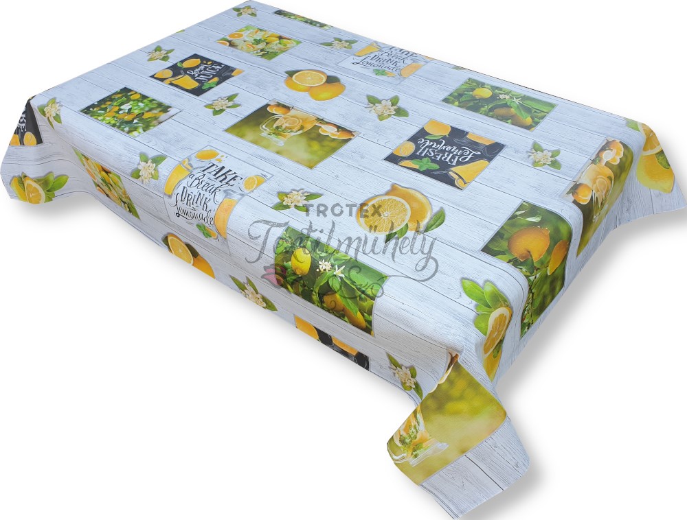 Viaszos vászon terítő méterben Vastag, szürke alapon citromos